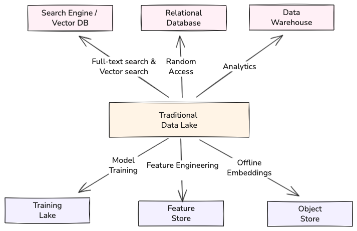 This is the second dimension of multimodal complexity: you don’t just need a place to store the data – you need a retrieval layer that can serve both high-throughput scans and low-latency random access, from the same source of truth, without forcing you to build and maintain multiple “performance copies” of the same dataset across different systems.