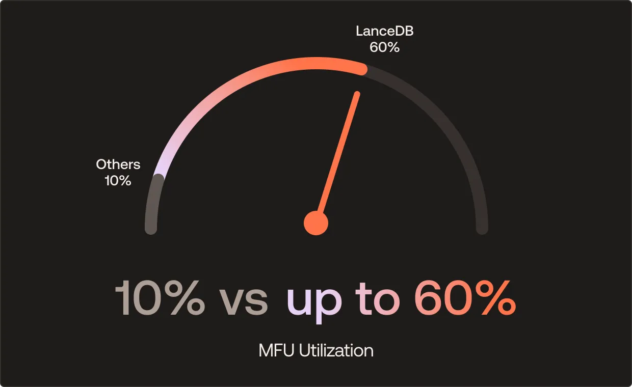Accelerated training from the same table you explored and curated. Get up to 70% MFU with no egress bottleneck.