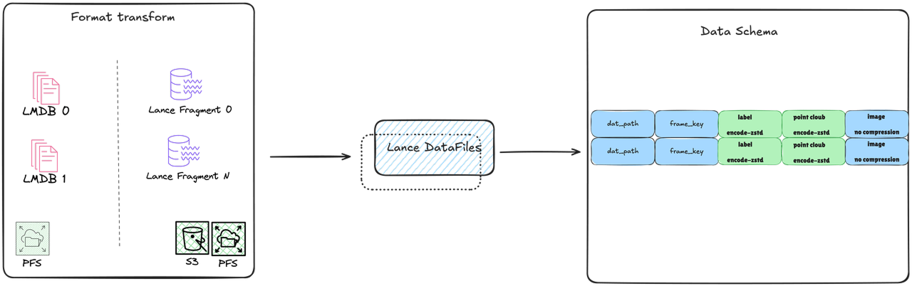 Traditional methods (such as LMDB or Pickle) require rewriting the entire dataset when adding new columns, consuming significant resources. Lance, however, supports rapid schema evolution through Manifest metadata. It's very light and high-performance.