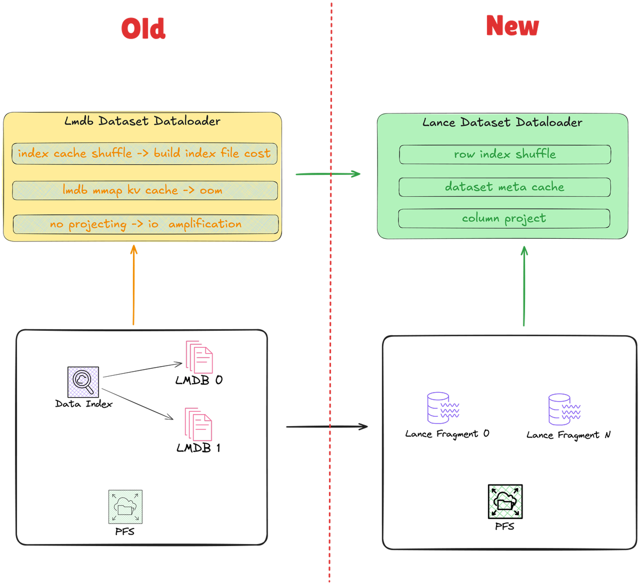 - Pain Point: LMDB required full dataset rewrite for new label columns, causing storage bloat and GPU waste.