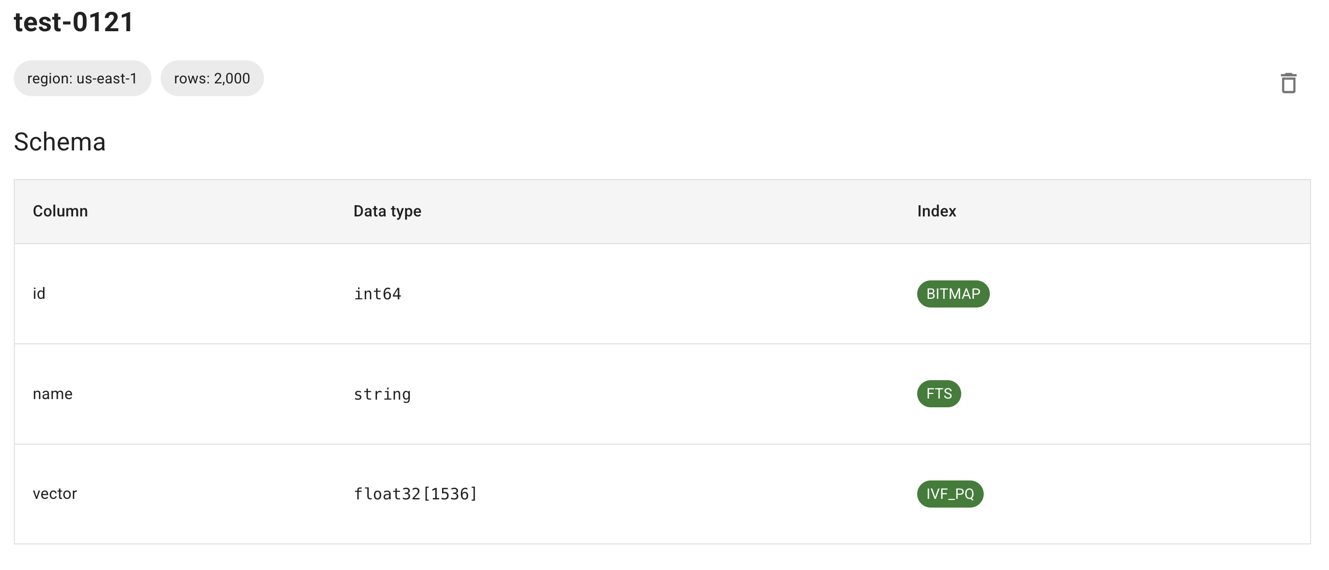 Navigate to your table page - the “Index” column shows index status. It remains blank if no index exists or if creation is in progress.